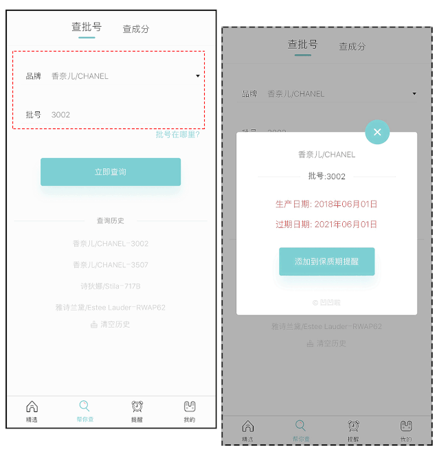 这个APP好用的地方在于,既可以搜索产品成分,也可以查批号。把品牌和批号填进去,查询之后就会跳出来以下信息: