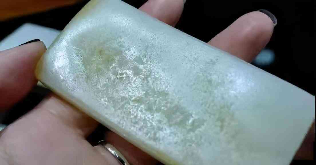 最后,多数的鸡骨白籽料不仅表面是混僵,即便切开后,内里要不是僵,要不就是僵肉混合着。因此鸡骨白基本上很少看到完全玉质,即便有,那也只是个别例子。