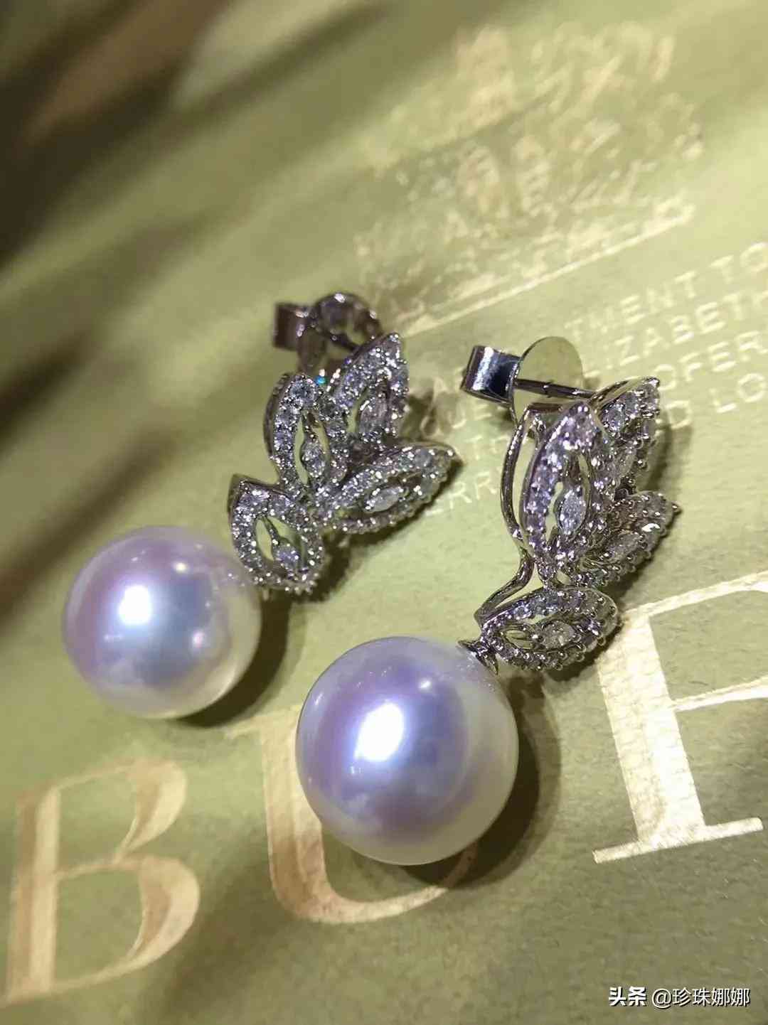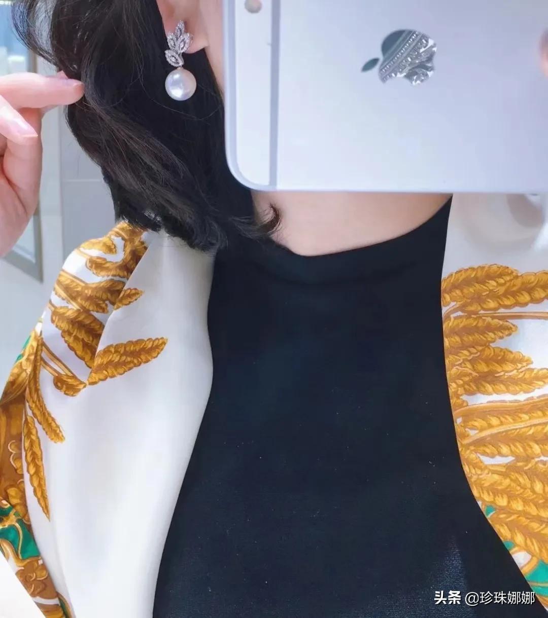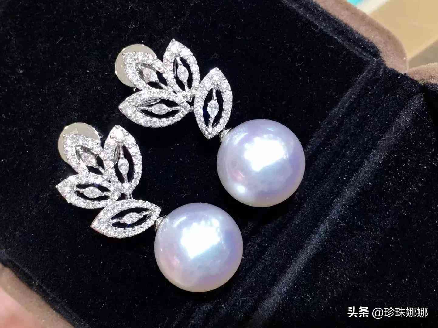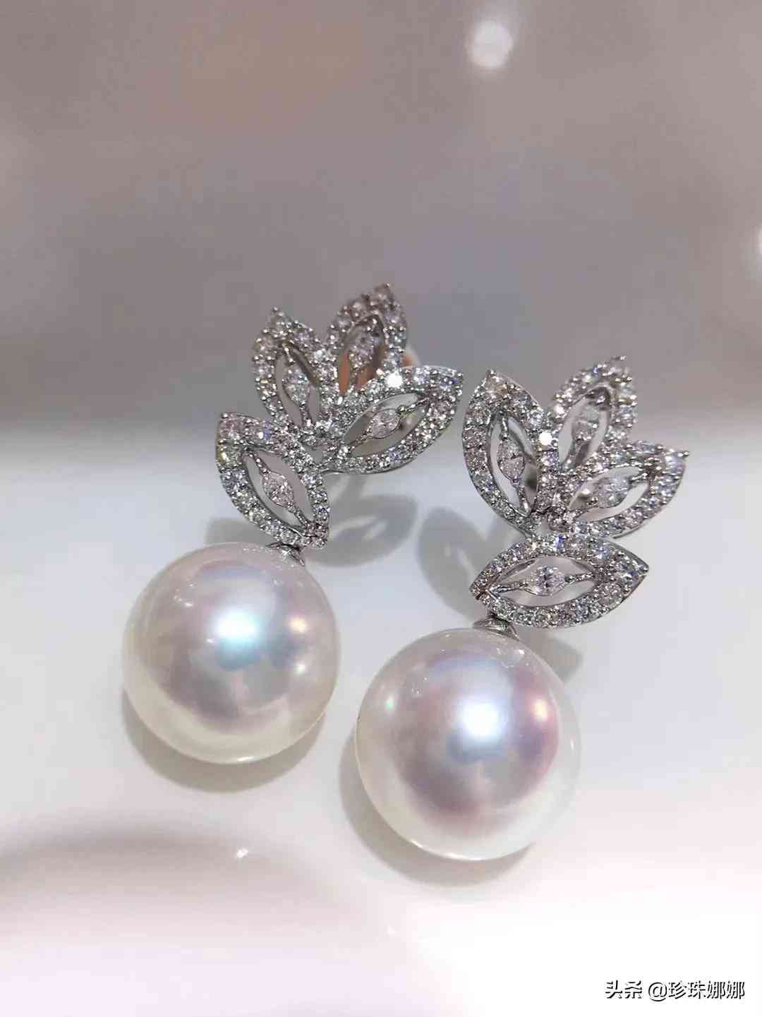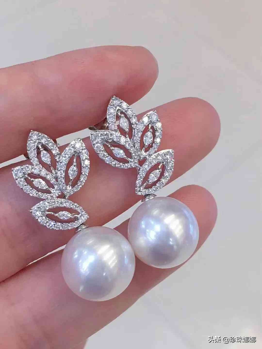 新品钻石澳白耳环,钻石0.874克拉,12-13mm镜面粉光澳白,高品质的珠子和质感饱满的镶嵌工艺,又美又有品位
