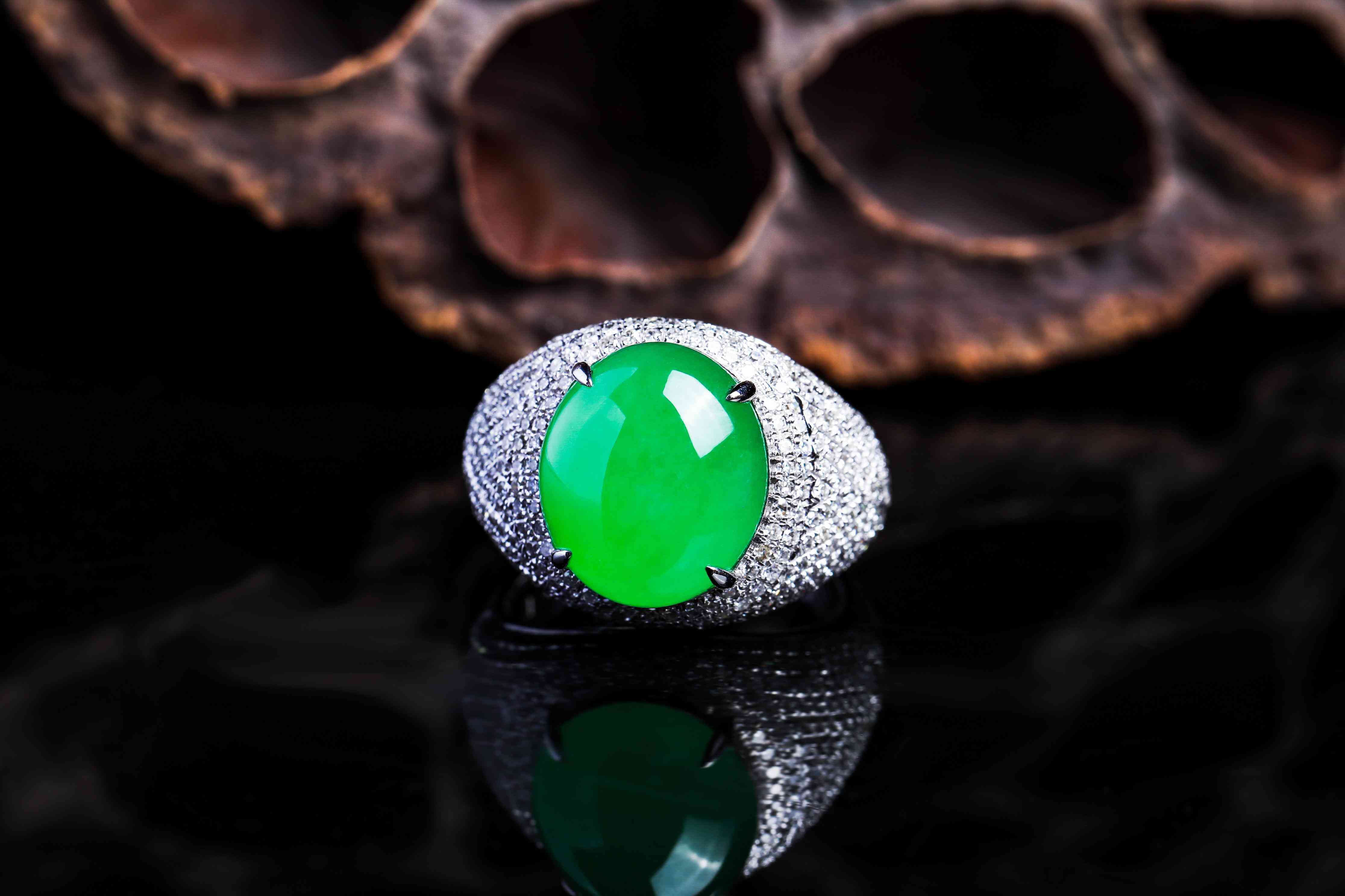 严格地讲,帝王绿翡翠特指老坑玻璃种翡翠呈现祖母绿颜色的翡翠,因此帝王绿必配好种,这样即使光弱的时候因为种水上等可以发光,仍然可以产生很美的视觉效果。