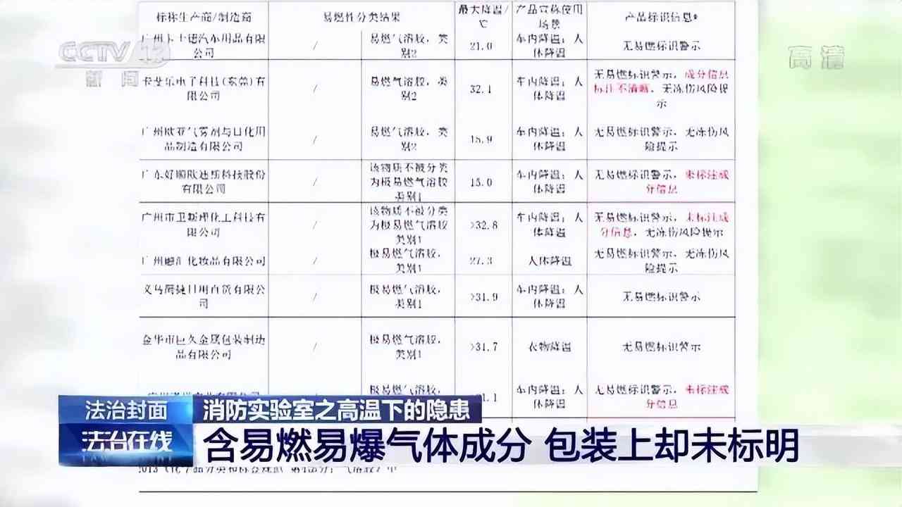 重庆大学分析测试中心工程师秦世江:这类产品要比我们平时用的化妆品喷雾、保湿喷雾更危险。因为化妆品喷雾里面都是含有大量水的,而这一类几乎都是纯的易燃易爆气体组成的,更容易爆炸。