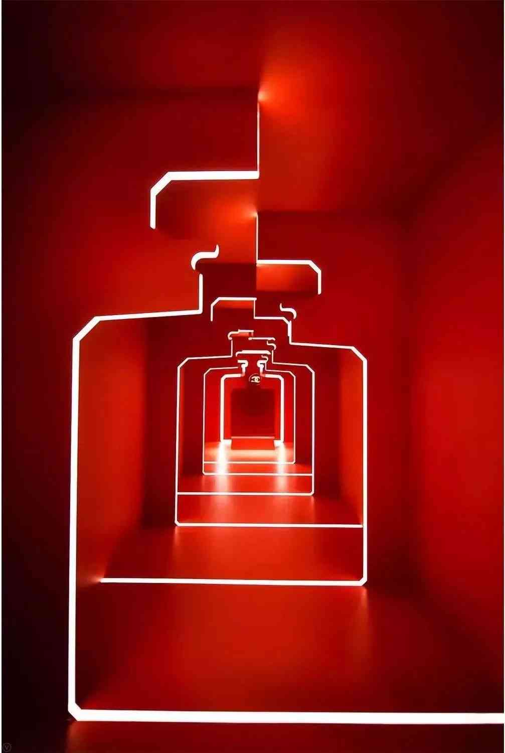 在制造美丽的“生产间”,红色溶器中的唇膏若隐若现;悬顶的制造线徐徐输送红色五号香水。