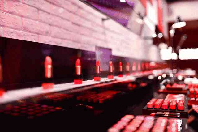 两侧的唇膏传送带令人“脸红心跳”,跃跃欲试;极具视觉冲击的影像墙于动态影像中展现红唇诱惑。