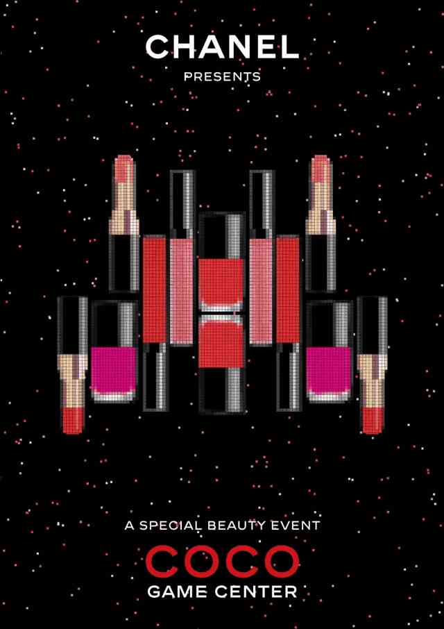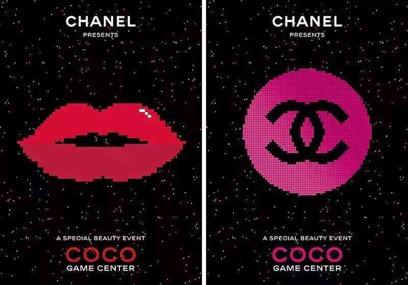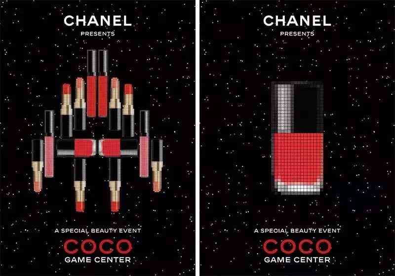 Chanel还为此次快闪店出了一组像素风的海报,一系列彩妆产品化身为经典游戏中的俄罗斯方块。