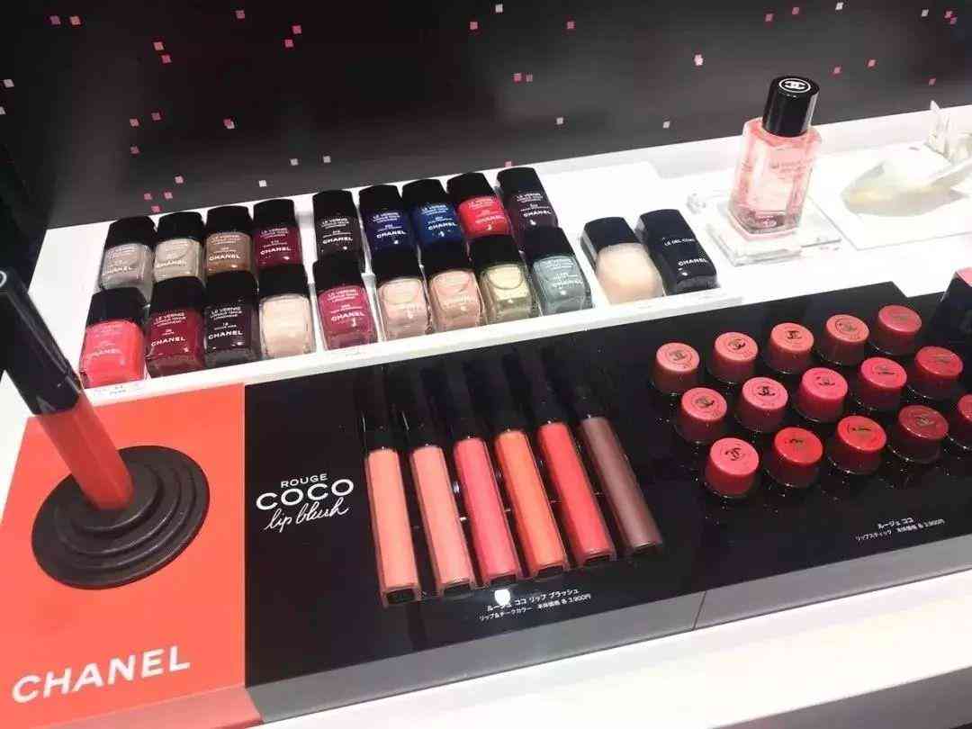 在彩妆区,彩妆的展示台同样是游戏机造型的柜台。机台上是用COCO胭脂、口红做成的摇杆和按钮,和真的游戏机几乎一样。