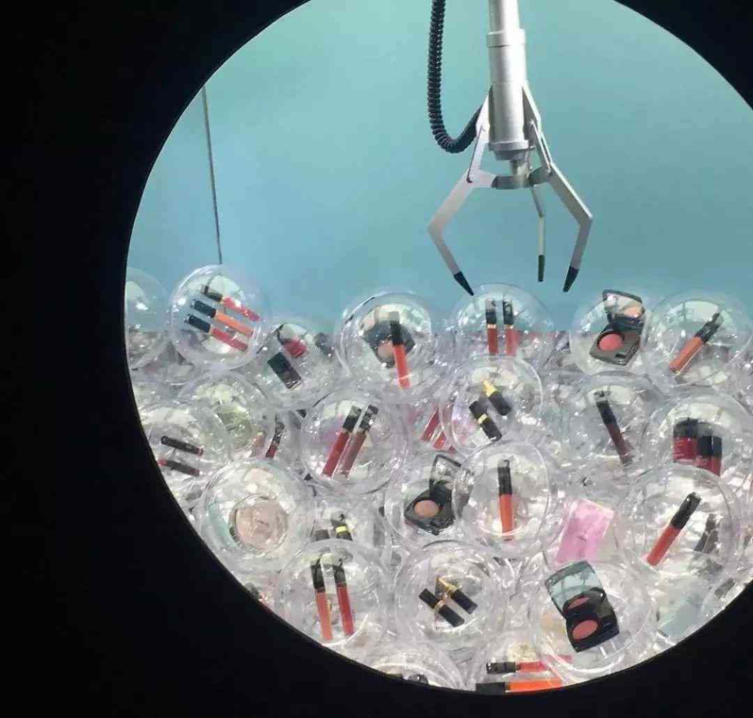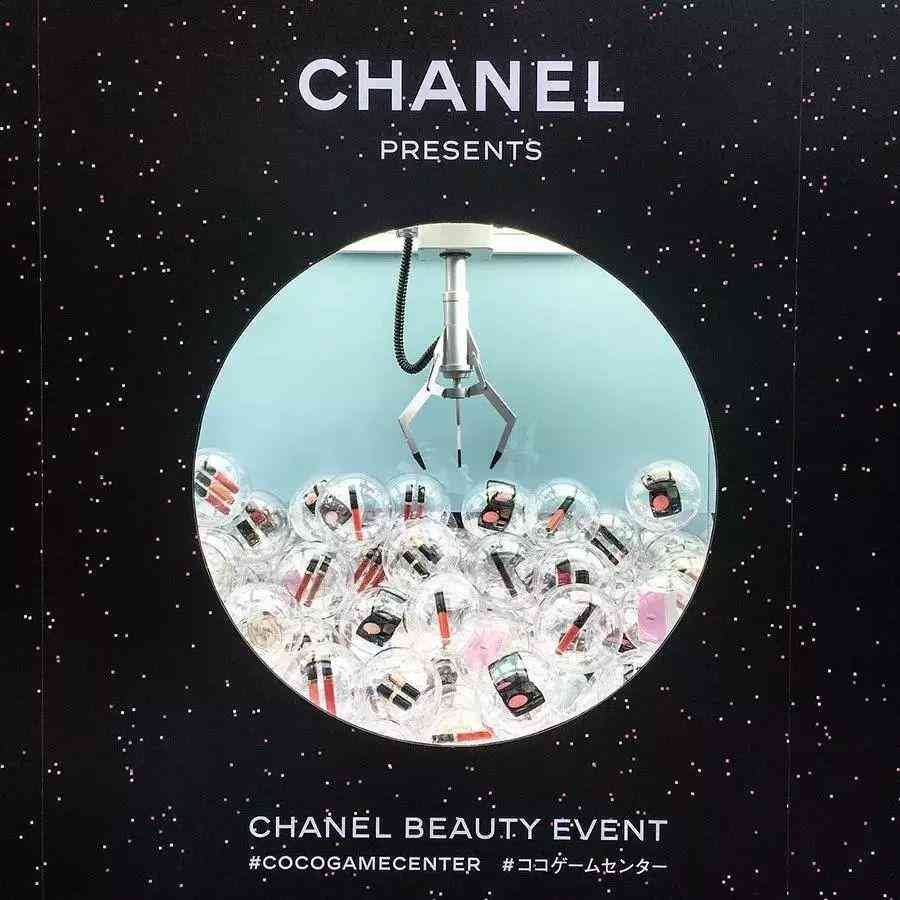 当然最让女生们尖叫的就是这个抓娃娃机,但机器里面并不是公仔,而是Chanel的一系列彩妆产品,有口红、唇釉、腮红等。看看里面的奖品,每一颗扭蛋里面都是高价彩妆产品。真是夹到就是赚到啊!