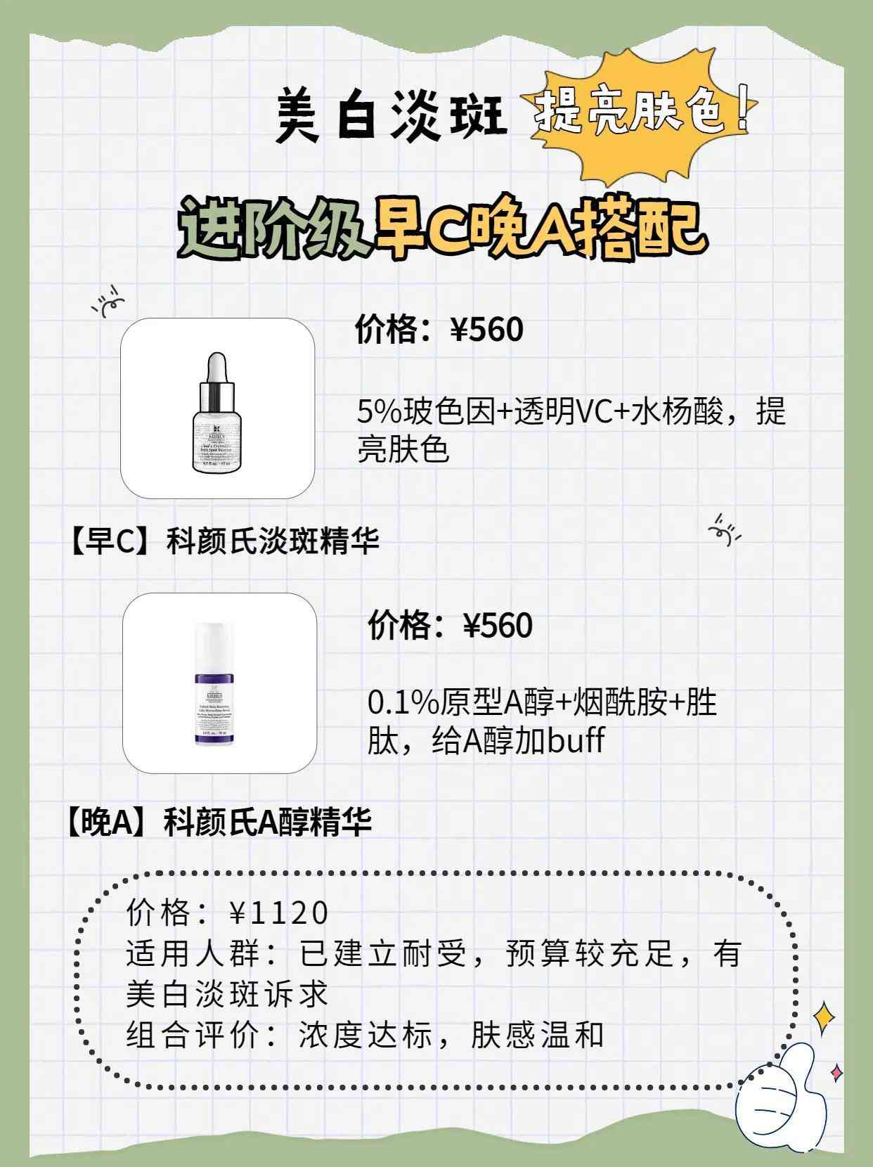 【早C】科颜氏淡斑精华 +【晚A】科颜氏A醇精华