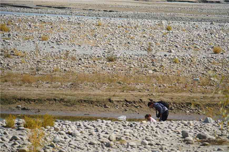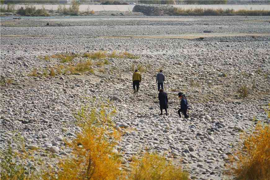 和田玉交易市场对面不远就是著名的玉龙喀什河,远远的就可以看到很多人在这里寻寻觅觅,这条河里盛产白玉、青玉和墨玉,自古以来是和田出玉的主要河流。也是很多人来到和田,都会来走一走,找一找,碰一下运气的河。