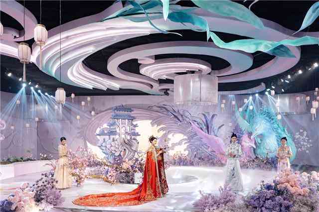 2023年是吉时·囍宴婚礼秀的第六季,长沙瑞吉酒店突破过往以西式婚礼作为主题的秀场模式,将2000平米的瑞吉大宴会厅打造成融入东方美学的唯美新中式婚礼现场,以“凤凰于飞”为主题,展现秀场的同时,宣扬中国传统婚嫁习俗。宴会厅被叶澜宴会定制打造成瑶池仙境,凤与凰交颈恩爱,象征鸾凤和鸣,佳偶天成。为结合中式婚礼主题,舞台秀加入了中国传统婚嫁礼仪的品鉴,“女儿红”“梳头礼”“拜堂礼”等,展现了中国千年传承的,对于婚嫁的美好祝愿和庄重仪式感,使宾客们身临其境地沉浸于唯美精致的婚尚体验。