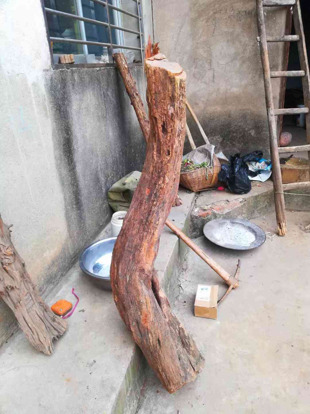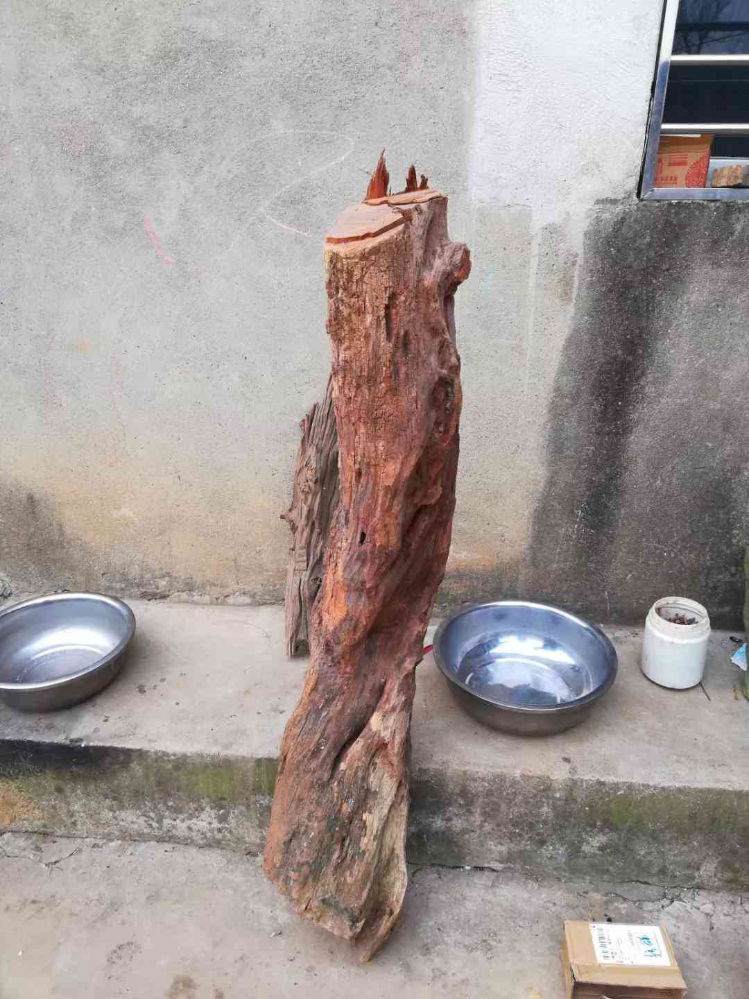 我把它扛回家准备烤火的,由于在河里浸泡了不知道多少年,里面含水量太大怎么烧就是烧不燃,就找了一个不碍事的地方把它晾起来,等它干了在拿来烤火。