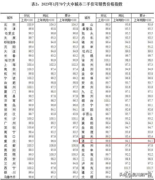 2023年1月,湛江二手房价格环比下降0.2%