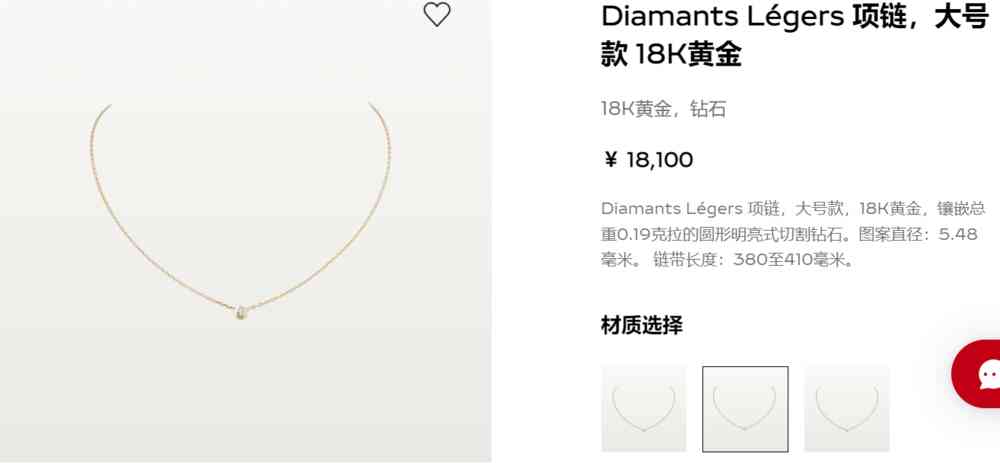 卡地亚18k黄金、0.19克拉的单钻项链,售价18100元。某福“平替款”,同样是18k金,钻石0.2克拉,仅需4980元。