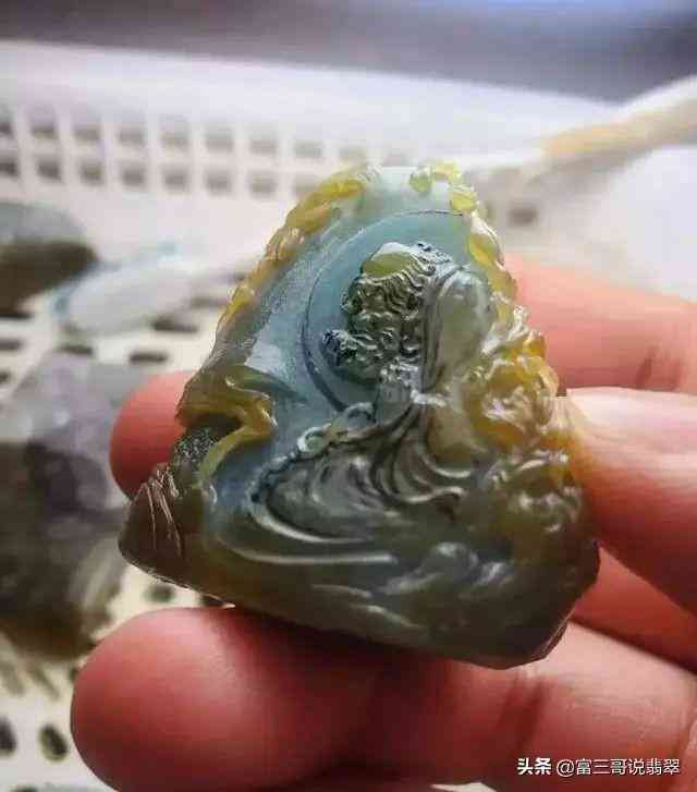 这块原石来自大马砍,从开窗口来看,有双彩表现,油性感也很好,糯化到糯冰的种质,最终被一位玉雕师拿下了。