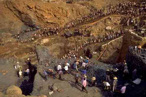 除了使用挖掘机外,很多古老的开采方法仍在沿用。