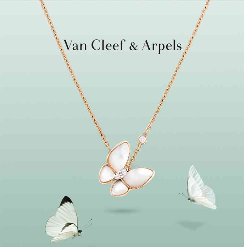 梵克雅宝蝴蝶:采用白贝和钻石镶嵌的蝴蝶也是梵克雅宝非常著名的款式。不过蝴蝶虽然颜值高,但是售价已经到了6万元一条,并不是特别值得购买的款式了。