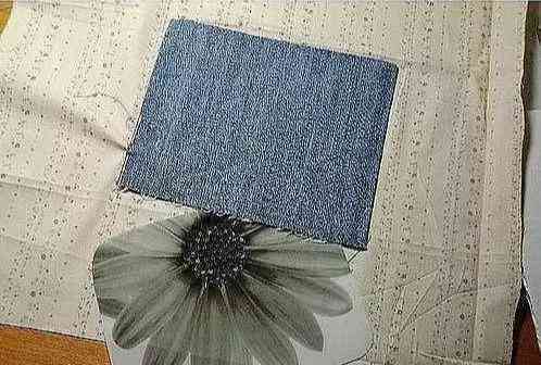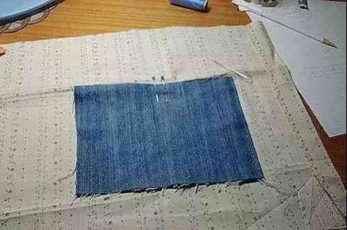 2:选择比较厚的牛仔布做盒底,把四边缝一下。