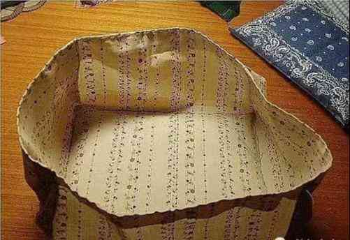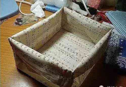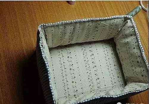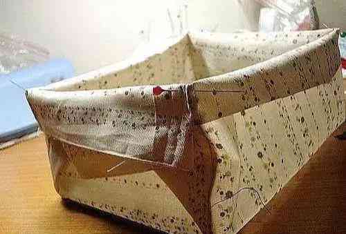 12:将内衬和外圈布用针固定到一起,其中放置硬塑料垫板和辅棉,辅棉薄厚自己酌情放置。然后沿周圈缝合,盒身就基本成型了 。