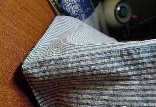 4:当三面都缝制好后,可以将剪裁合适的垫板和辅棉装入了,辅棉贴内衬那块布放置,这样里面以后就是软绵绵的了。