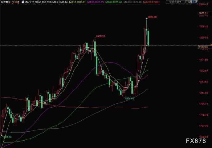 金价周一触及2009.59美元的2022年3月以来最高,但此后有所回落。KitcoMetals高级分析师JimWyckoff表示:“我们看到今天市场上的避险情绪有所减弱……但主要是在昨天金价触及12个月高位后,短期期货交易商大量获利了结。”