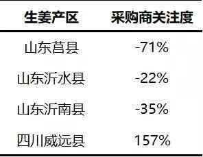 再具体到生产县域,也可以看出采购商关注转变的情况,例如采购商对山东莒县的关注度同比下降了71%,对沂水县下降了22%,对四川威远县关注度同比上升了157%。