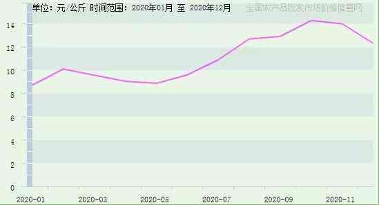 为什么今年采购商对生姜关注度大幅度降低呢?其中生姜的价格出现上涨是主要原因。据全国农产品批发市场价格信息网数据显示:2020年12月生姜批发市场价格为12.32元/公斤,与去年同期的8.73元/公斤相比,同比涨幅四成以上。
