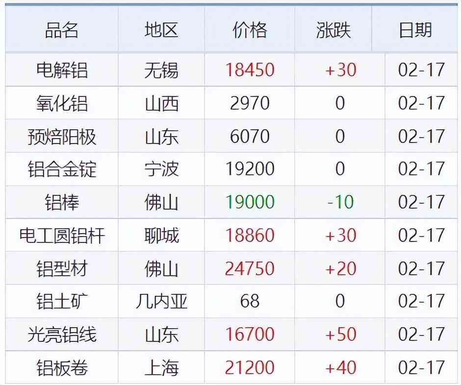 华东地区铝锭止跌反弹震荡运行,现货铝价18440-18480元/吨,均价18460元/吨,涨30元/吨。
