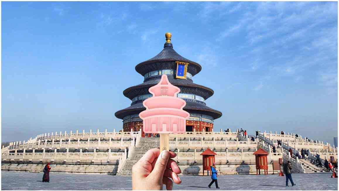祈年殿造型的景点打卡雪糕。口味是天坛月季花口味。颜值和美味集于一身。雪糕杆上还有祈福词语,增强互动性。