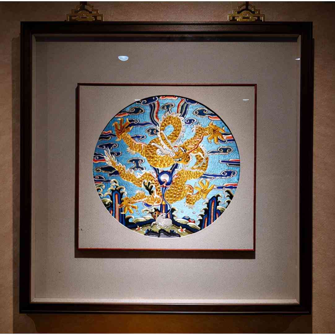 北海龙相框采用真丝面料为底料,图案来源于北海九龙壁龙造型,经过设计改良成相框造型,可装裱于家中。工艺采用非物质文化遗产项目清宫刺绣来绣制,绣工精致,特色鲜明。