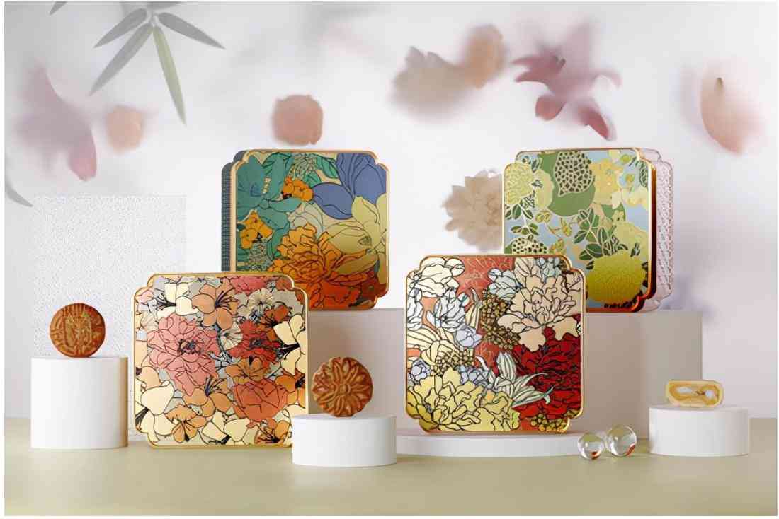 盒型设计灵感来源于明代剔红五老图方盘,四款礼盒纹饰源自故宫藏品中的花卉果实元素,创意性的配色使画面兼具传统的妍丽隽雅与现代的时尚大气,周身十字菱花方格纹连续铺展,寓意着吉祥福运,无止无尽。