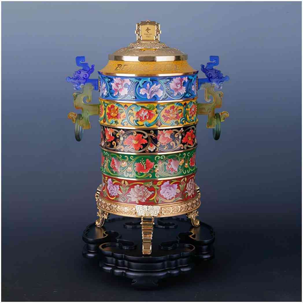 中国工艺美术大师组成的设计团队精心策划推出,总高43厘米,采用景泰蓝、琉璃和錾刻三大非遗技艺制作而成,是迎接北京2022年冬奥