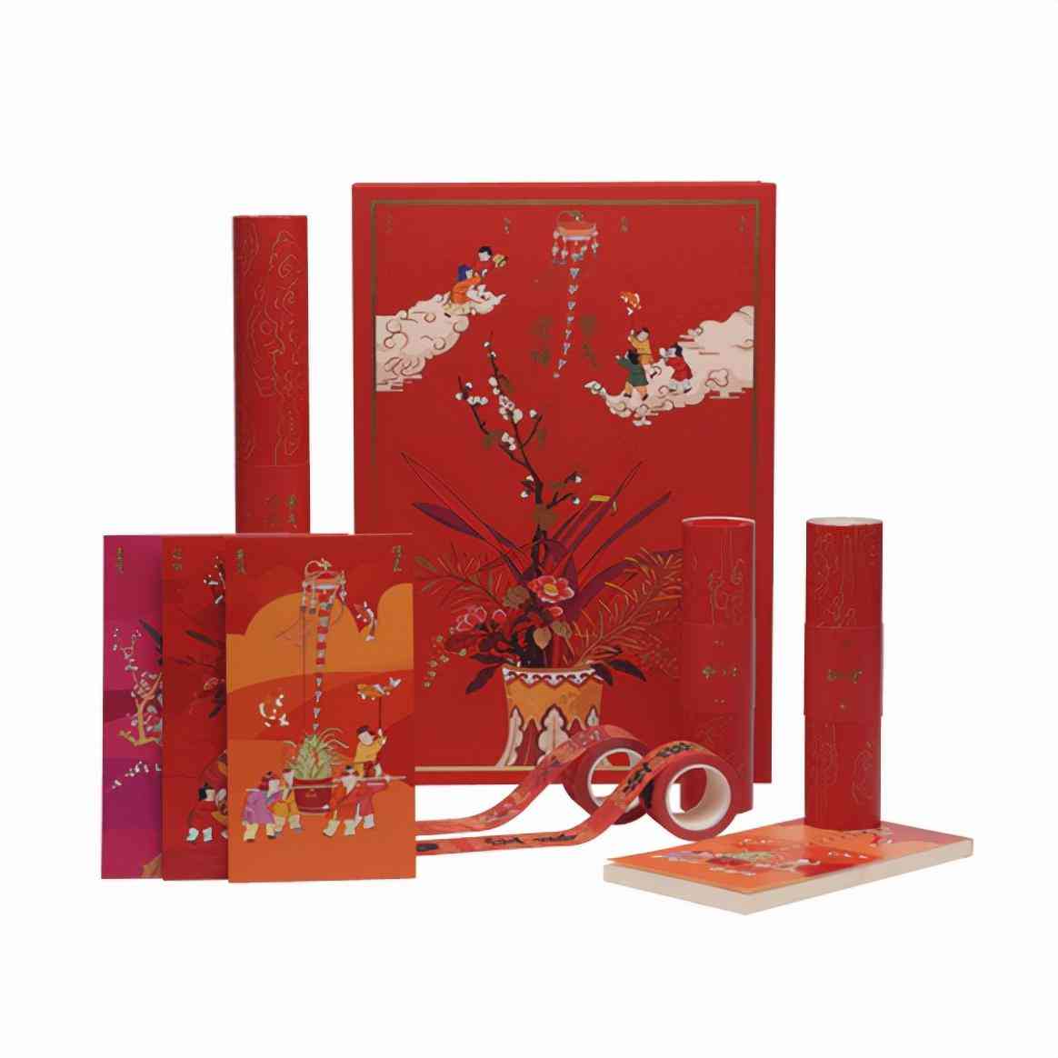本产品整体设计来源于故宫藏品福贵岁朝图轴,选取图中孩童形象作为主体视觉。通过高仿真乾隆“福”字、高规格的将军门神以及春条“万福、平安、宜春、迎祥”等元素及形式,呈现故宫传统文化,喜气盈门。