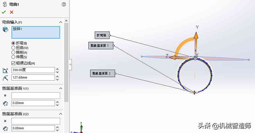 3、弯曲,将放样好的曲面弯曲形成戒指环。