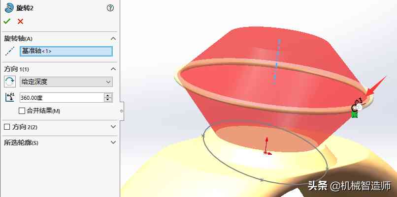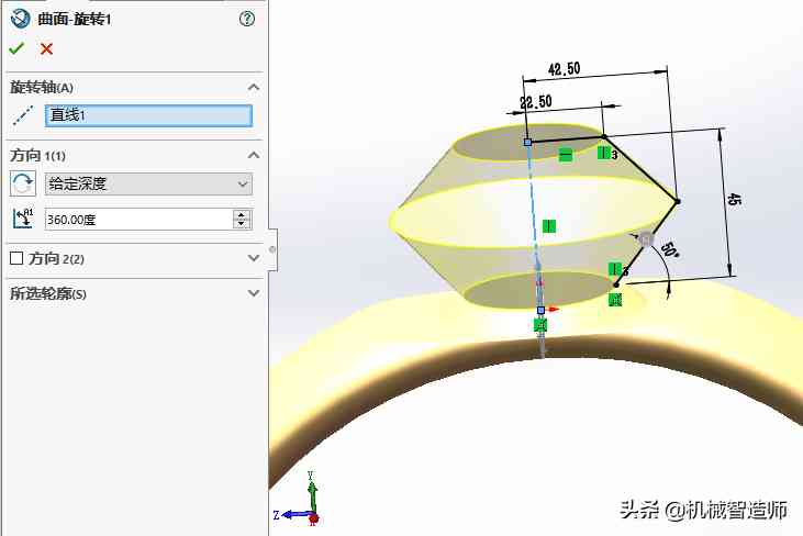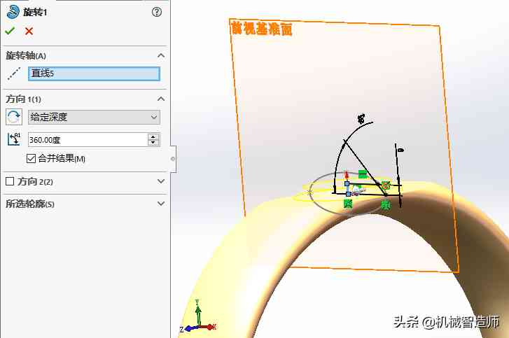 5、旋转,在前视基准面上绘制图下草图,旋转。