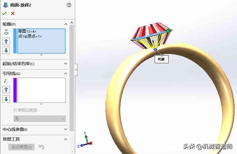 在上视基准面上草绘一个点,这个点与基准面3上的草图同心。