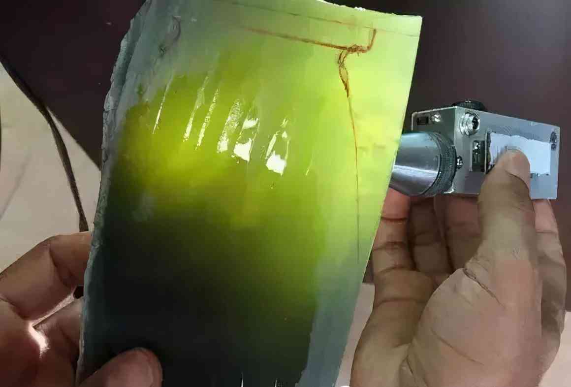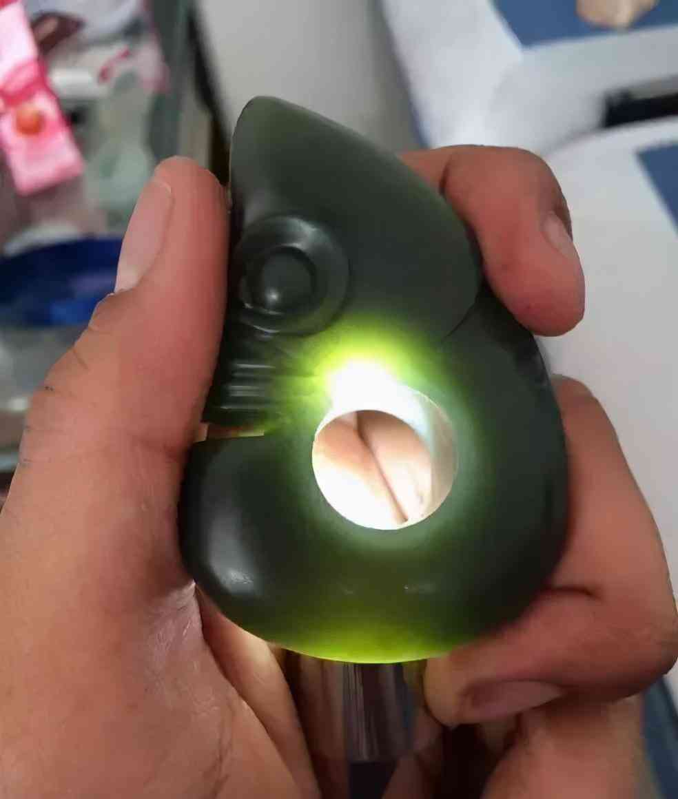 迪拜玉打灯看就像太阳光透过玻璃瓶里装的橄榄油。