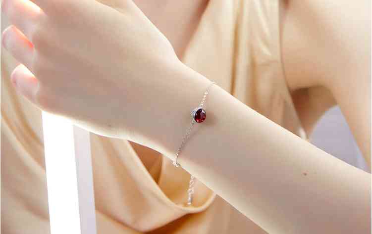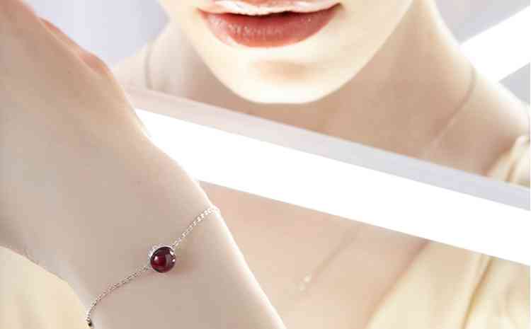 挑选tips:偏黑的女性在挑选时要注意避开粉水晶、紫水晶、碧玺等颜色较浅的手链,可以选择造型感较强的红石榴手链,高明度的酒红色配以通透的质感,恰如其分的点缀在手腕,不至于显得庸俗难耐, 反而别有风情。
