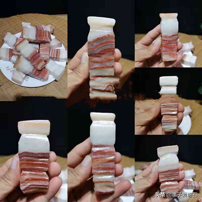 听烧爆竹童心在,看换桃符老兴偏。鼓角梅花添一部,五更欢笑拜新年。又是一年一度的新春佳节,家家户户春意浓,庭庭院院对联红。我在这里给各位朋友拜个晚年,祝大家吉祥安康,财源滚滚。春节是我们中国人每年最盛大的节日,外出归来的游子们陪伴在老人身旁,喝酒吃肉欢声笑语。各种美味的肉食是春节餐桌上必不可少的美味,对爱石人来说,肉形石也是他们最爱的奇石之一。其中最贵的肉形奇石被专家估价上千万,这其中还牵出一段离奇的故事。但市面上有些肉形奇石却是人工作型,用染料着色的假奇石。