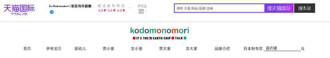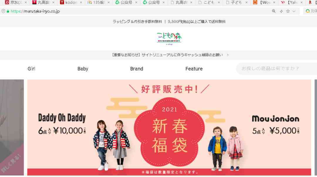 如上图所示,丸高衣料在日本的官网店铺,也是用的“子どもの森”。