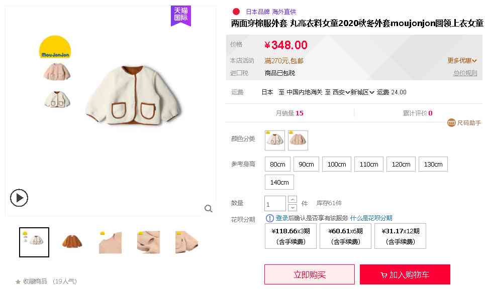 还有这件星星斗篷(婴童款),也是日本制的,只要三百多,搭配2件打底衣服凑个600元,就能打8折,还减80(满减60+粉丝专享券20),折算下来只要两百多!哪里能买到 200多的日本制啊!