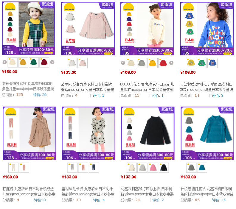 要说明一下,丸高衣料在天猫的旗舰店不叫“丸高衣料旗舰店”,而是叫“kodomonomori童装海外旗舰店”。当然,你搜“丸高衣料”,应该也能蹦出kodomonomori童装海外旗舰店的商品。