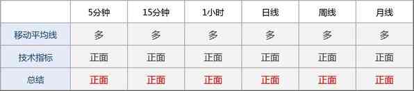 多周期技术信号显示日内市场情绪看涨:短线看涨(5分钟,15分钟,1小时),中线看涨(日线),长线看涨(周线,月线)。