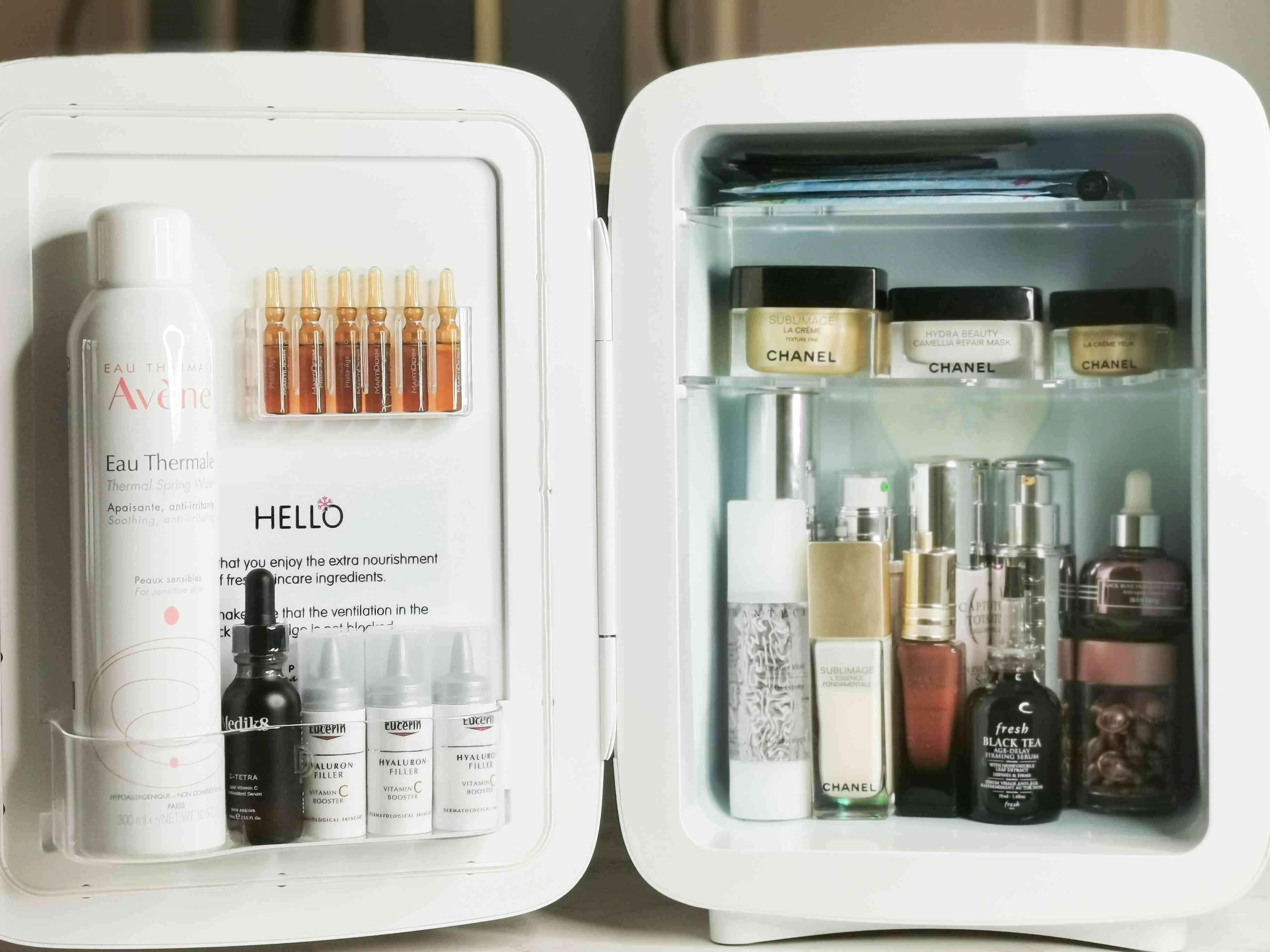 10升大容量:不易保存的各种活性成分护肤品(保持活性);保质期短的安瓶、冻干粉(尽可能延长保质期);还有补水喷雾、芦荟凝胶、贴片面膜(加强镇静舒缓效果),通通一网打尽。