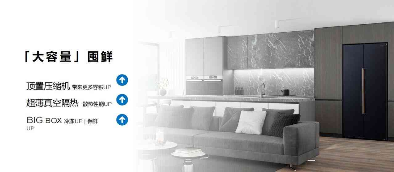 松下纤尚系列冰箱在设计上还有另外一大特色,那就是顶置压缩机。传统冰箱的压缩机通常被设计在底部,不仅影响散热,而且还占用了大量空间。而纤尚系列冰箱则将松下原装原配智能变频压缩机顶置到了顶部,可以保留更大的底层空间,顶层设计相对微浅,保留了同级别产品的大抽屉盒设计,食材更容易拿取,使用更方便。