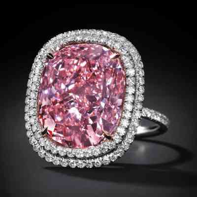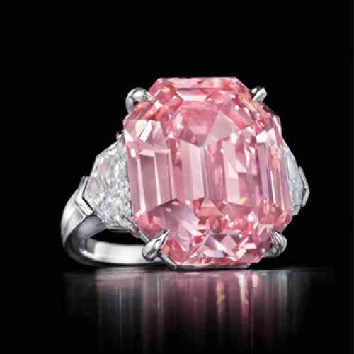 2010年,这颗完美的粉红色钻石在香港佳士得拍卖会上以超过 2300 万美元的价格卖给了一位不知名的竞标者。这颗钻石是同类中的一颗,具有强烈的粉红色和非常非常轻微的内含物净度。它被切割成祖母绿形状,重约14.23克拉。完美的粉红色钻石镶嵌在花式戒指中的两颗规则形状的钻石中。