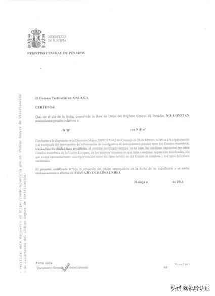 西班牙无罪证明样板