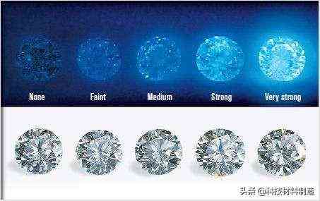 钻石的荧光:指钻石在紫外光的激发下发出的光。形象的说,我们平时用的钞票的一些部位在验钞机那种紫外光下不是也能发光吗,就是那种光。有一部分钻石会发荧光,一般是蓝白色的荧光,也有少部分的钻石发黄色的荧光。