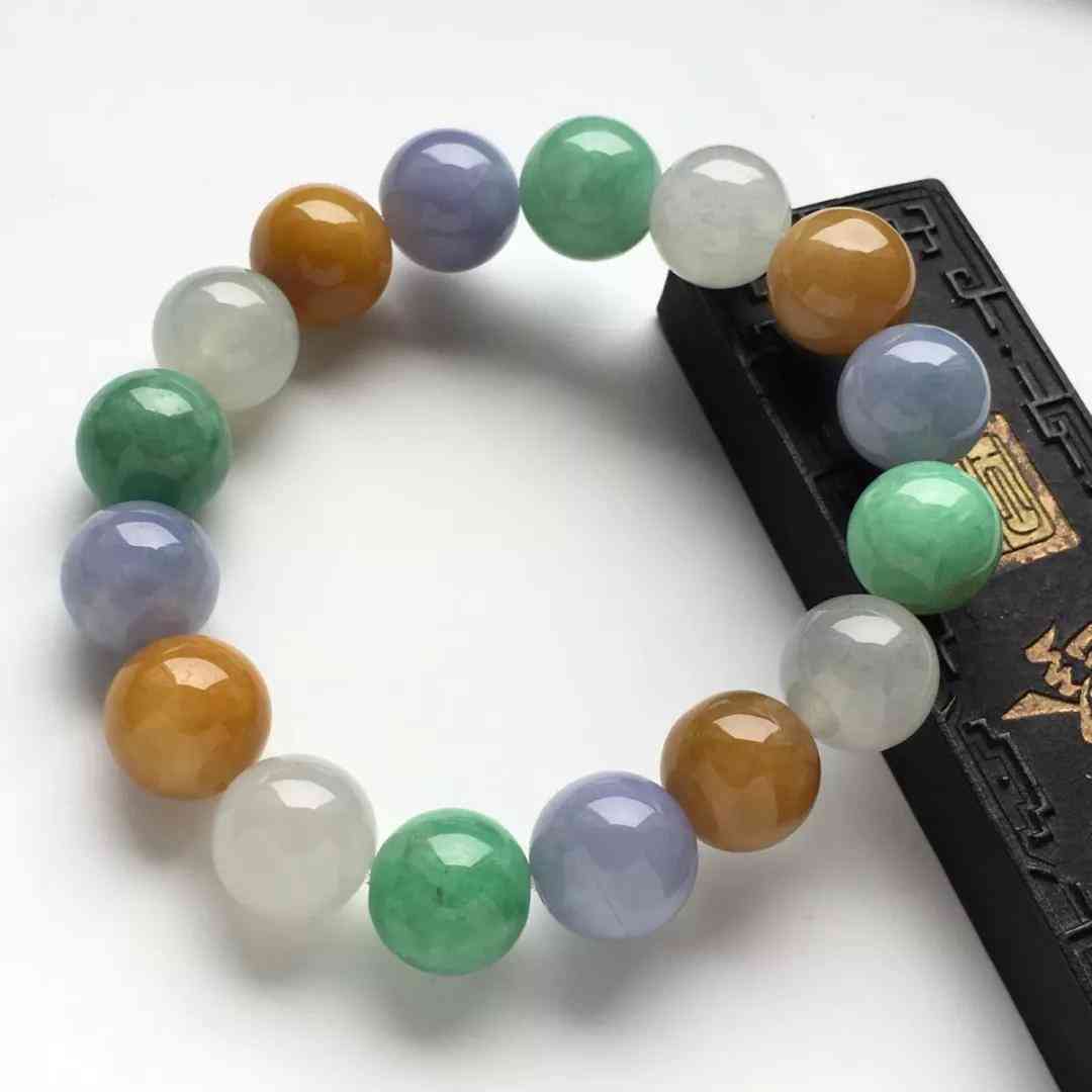 这里要顺便说到一个也有很多朋友常问的一个问题,为什么多宝手串要比一般的翡翠手串要贵,粗暴地说就是要集齐各种颜色还要大小差不多并且还要种水都差不多一样好的珠子真的比朋友们想象中难多了。开个玩笑地比喻,集齐一条好的多宝单圈的难度可能跟集齐七龙珠差不多,抛开种水不说,单是这上面要耗费的时间就够它卖个高价的。