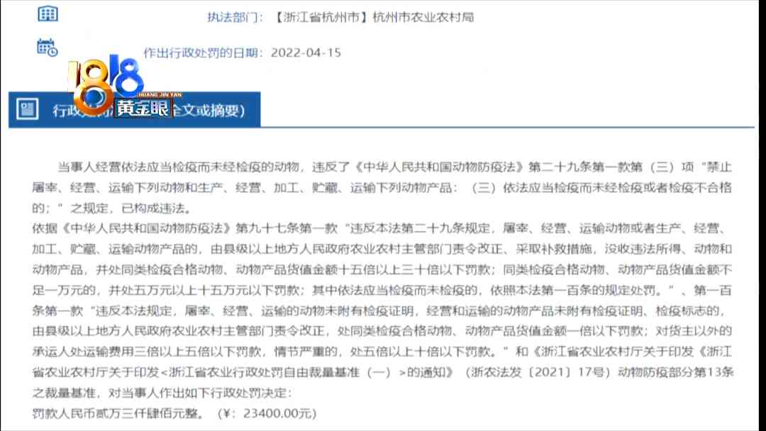 记者查询到,在今年4月15日,杭州市农业农村局对上海市宠资宠味宠物服务有限公司杭州分公司下发了行政处罚决定书,违反了《中华人民共和国动物防疫法》,被处以罚款23400元。