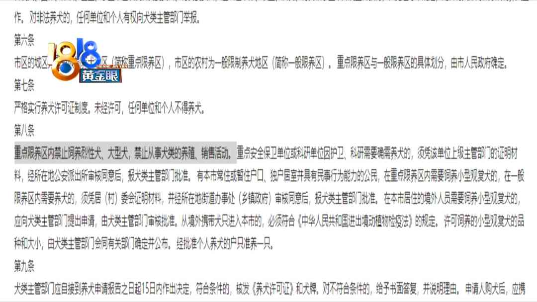 此外,根据《杭州市限制养犬规定》,市区的城区为重点限制养犬地区,重点限养区内禁止饲养烈性犬、大型犬,禁止从事犬类的养殖、销售活动。通盛路属于城区,按此条例,禁止销售活动,不过记者了解到,目前这一条例还没有相关处罚条例。