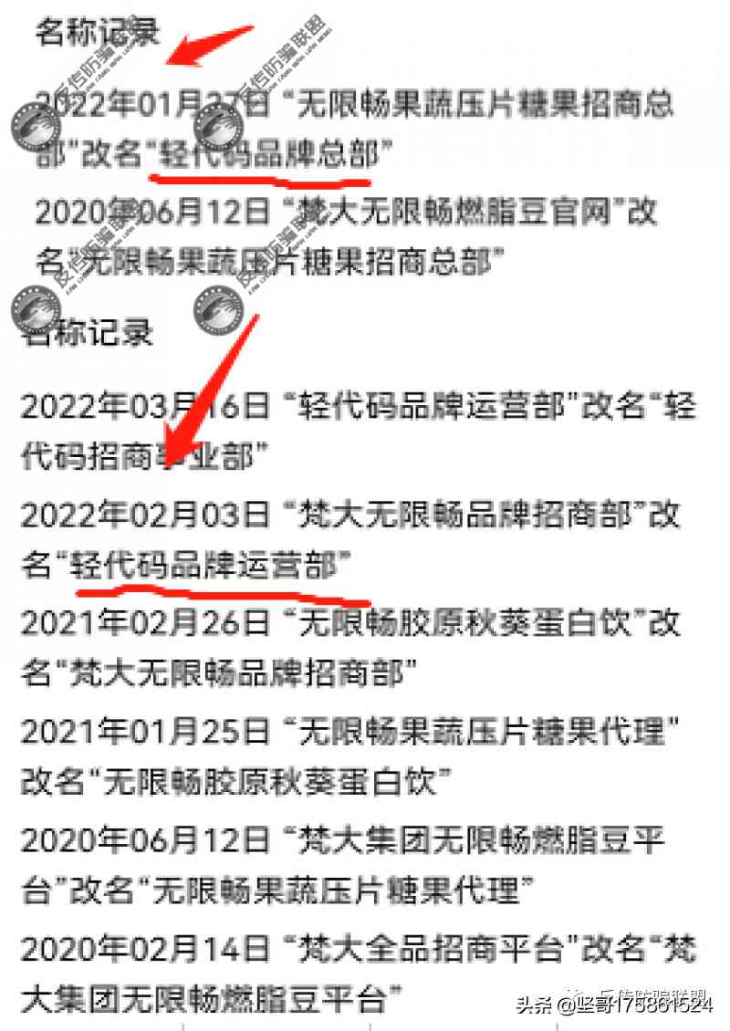 景甜代言无限畅翻车后,公司想到的不是纠正其错误,而是换个马甲重操旧业,让反传防骗联盟不得不感叹,还是处罚的太轻了!我们要清楚的记得梵大集团种种金蝉脱壳与倒打一耙的惯用伎俩,至于“轻代码”未来的发展会如何?是否继续我行我素不知悬崖勒马?其背后的梵大集团还会有什么新的动向?我们也将持续保持关注!